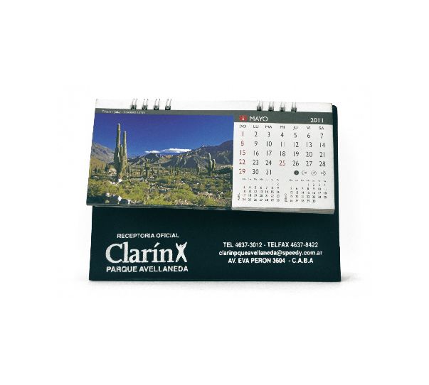 Almanaques carpitas de 12 hojas. Parte delantera con almanaque y parte trasera con agenda para anotaciones, sobre base de tela plástica anillada.