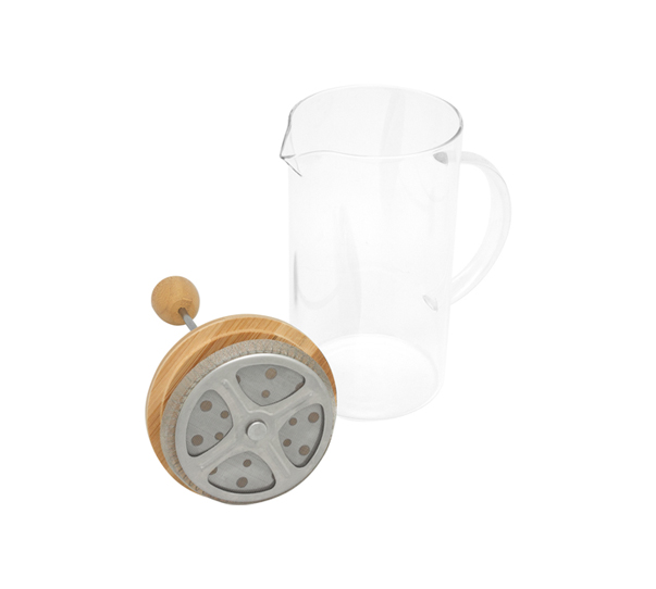 Cafetera Prensa Francesa con filtro de aluminio. Capacidad 600ml. Vidrio de Borosilicato + Tapa de bambú.