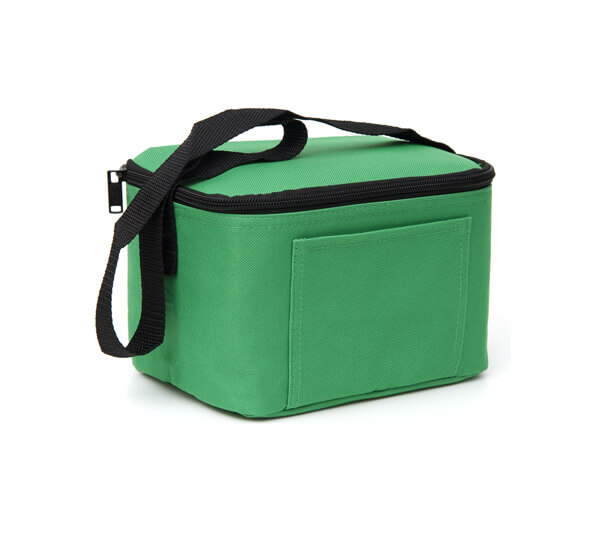 Realizado en su exterior en Polyester 600 x 300D. Interior en aluminio y PE foam. Tira para hombro. Compartimento principal superior y bolsillo frontal. Medidas: 21 x 13 x 13 cm. Capacidad: 3,5 Lt.