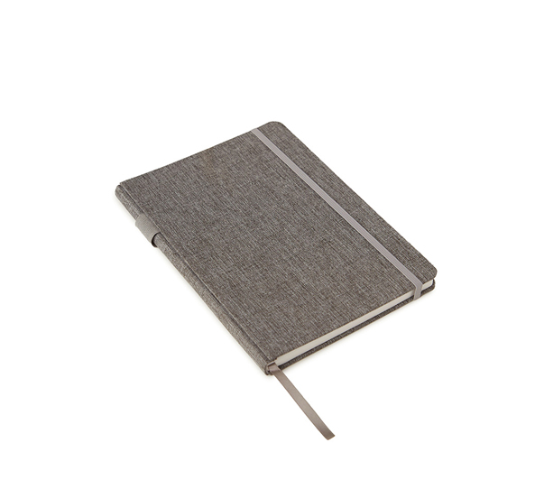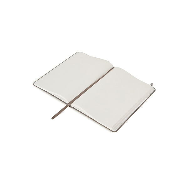 Cuaderno forrado en eco cuero soft con banda elástica de sujeción al tono. Posee 96 hojas rayadas color natural de 70gr y señalador. Medidas: 21 x 14,3 cm.