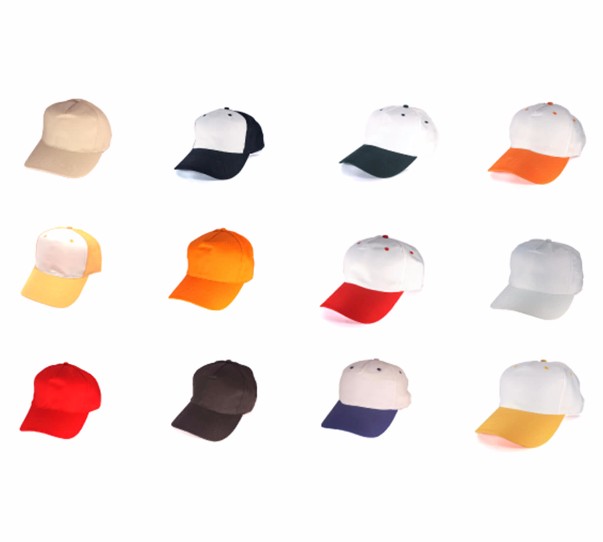 Gorro de gabardina. Medida única, regulable con tira de velcro. 5 gajos de algódón y poliéster con 6 ojalillos bordados y botón forrado al contratono y al tono.