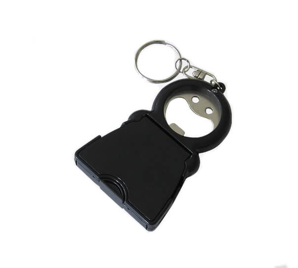 Llavero Despatador con 3 Funciones, destapador, apertura frontal que lo trasforma en un soporte para celular e incluye insertada una almohadilla para limpieza del cristal del celular.