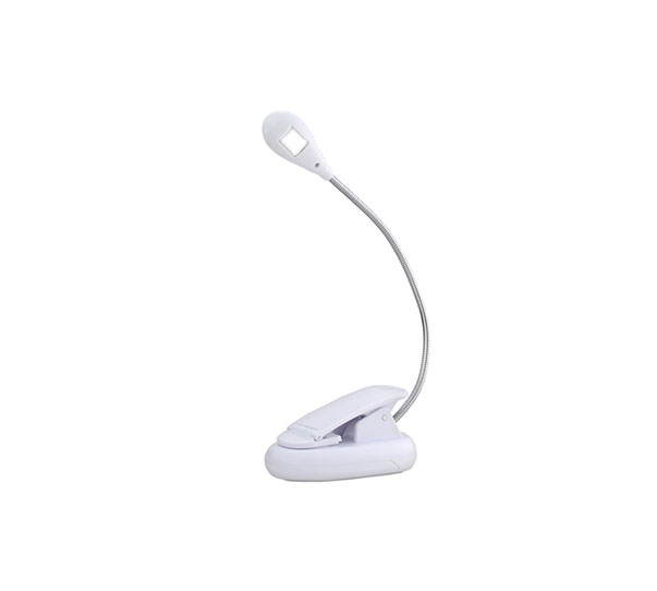 Luz de lectura con clip. Utiliza 3 pilas AAA (no incluidas) o enchufado por USB. Con brazo flexible metálico. Cabezal movible.