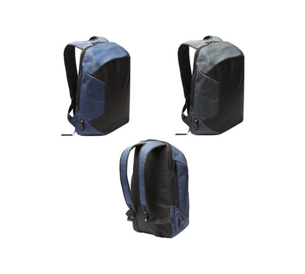 Cierre principal de seguridad oculto en el espaldar. Compartimiento portanotebook protegido y puerto USB para cargar dispositivos. Bolsillos laterales integrados en el diseño, detalles y manijas en color azul. Medidas: 44 x 29 x 16 cm ; Capacidad: 20 Lts. Laptop: 15,6`.