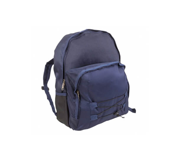 Mochila clásica y práctica. Super resistente. Cuenta con un compartimiento principal con cierre y bolsillo frontal con velcro. Material: Polyester 600D. Backing PVC. Medidas: 41 x 31 x 13 cm. Capacidad: 16,5 Lts.