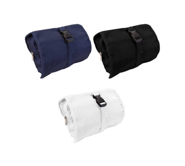 Confeccionado en tela de avión. – Medidas aprox. cerrado: 26 x 24 cm. – Medidas aprox. abierto: 26 x 45 cm. – Compartimiento principal de 15 x 24 x 7 cm. Bolsillo en red. Bolsillo en cristal. Cinta para colgar en percha. Cierre con manija en cinta de polipropileno y hebilla plástica. Opcional: Confección en tela símil cordura.