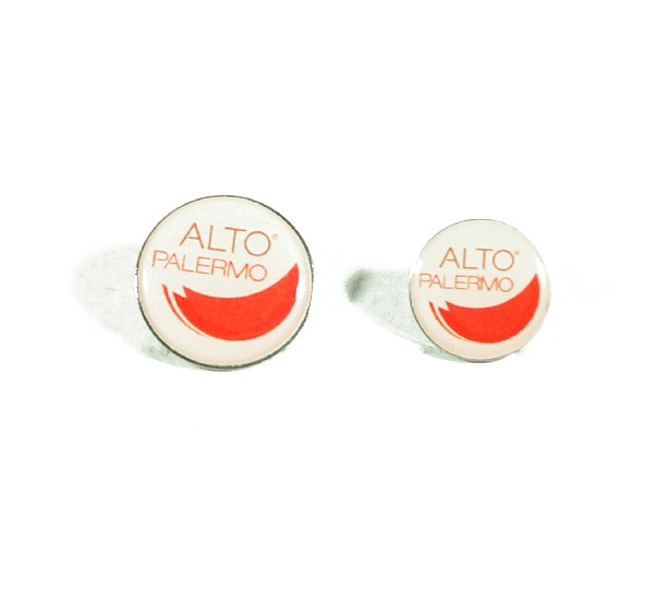 Pins metálicos con dome full color, de formas y tamaños varios, de acuerdo a la elección y logo del cliente.