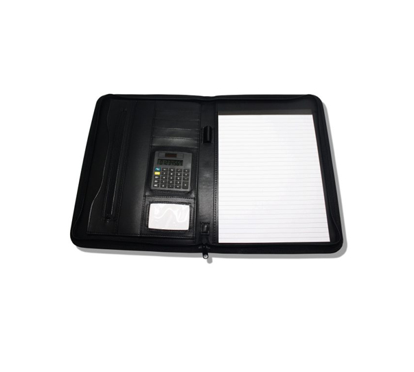 Posee calculadora,Tarjetero con Ventana de PVC,4 Bolsillos Tarjeteros, Portablock, Rulo Porta Bolígrafo, Sobre Lateral, Bolsillo Grande con Cierre, Block de Hojas y Cierre Perimetral.