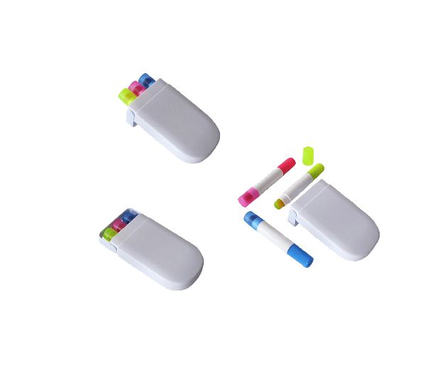 Set de 3 resaltadores de gel en estuche con cierre a presión.