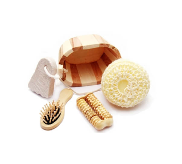Contiene: Canasta Madera-Masajeador-Piedra Pome-Cepillo-Esponja