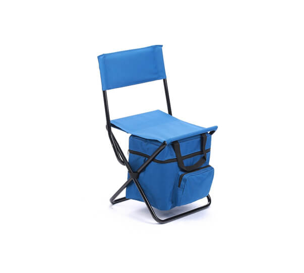 Realizada en Polyester 600x300D Peach Skin PVC Coating. Tratamiento de protección UV. Incluye bolso cooler en la base. Paño removible con velcro en la parte posterior. Incluye funda de transporte. Medidas: 30 x 40 x 66 cm