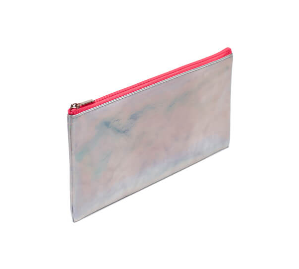 Sobre tornasol con cierre para bolso multiuso necessaire/cartuchera. Elaborado en Polyester. Medidas: 21 x 11 cm. .